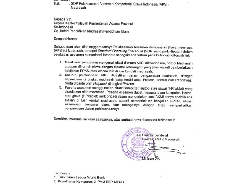 SOP PELAKSANAAN ASESMEN KOMPETENSI SISWA INDONESIA (AKSI) DI MADRASAH
